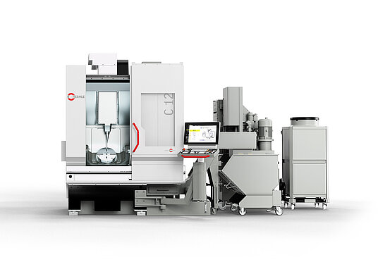 Weniger Aufstellfläche und trotzdem maximale Effizienz: Die C 12 GEN2 ist das kompakteste Bearbeitungszentrum der HERMLE High-Performance-Line.