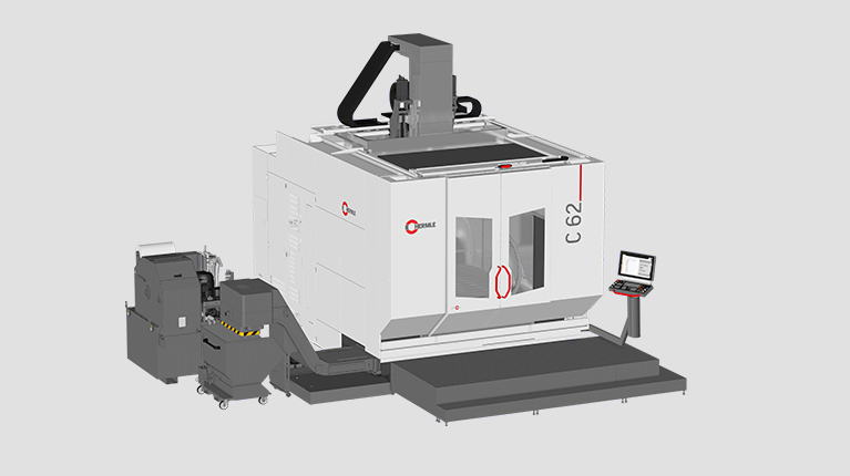 HERMLE C 62 U MT dynamic in 5-axis mill-turn version. Machining a spiral funnel in 42CrMo4 for machine construction