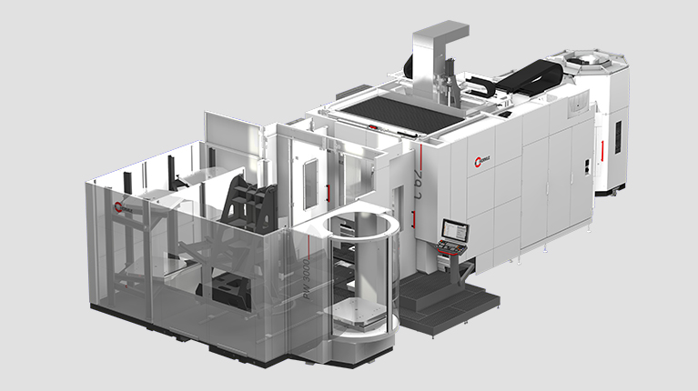 AMAG components Karlsruhe GmbH setzt auf Automation: Der Palettenwechsler PW 3000 versorgt das 5-Achs-Bearbeitungszentrum C 62 UP mit Nachschub. Indem der Lohnfertiger das Einrichten der Maschine von der eigentlichen Bearbeitung trennt, läuft die Spindel deutlich länger – und die Produktivität steigt spürbar.