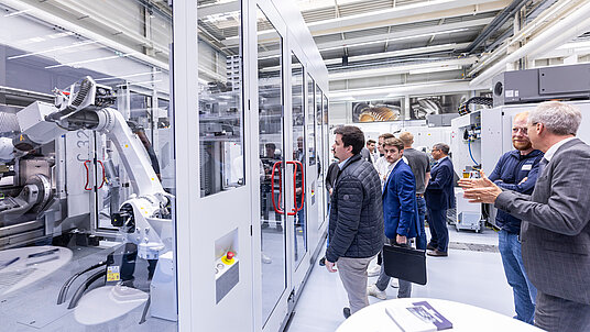 - Betriebsrundgänge durch die laufende Produktion vermittelten eindrucksvoll, wie die hohe Fertigungstiefe und die Qualität der HERMLE Produkte entstehen.