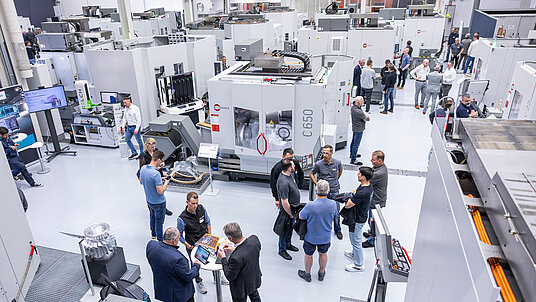 - Über 20 Bearbeitungszentren konnten live unter Span in unserem Vorführzentrum besichtigt werden. Moderne Zerspanungstechnologien und praxisnahe Vorführungen veranschaulichten das heutige Leistungsniveau der Fräsbearbeitung.