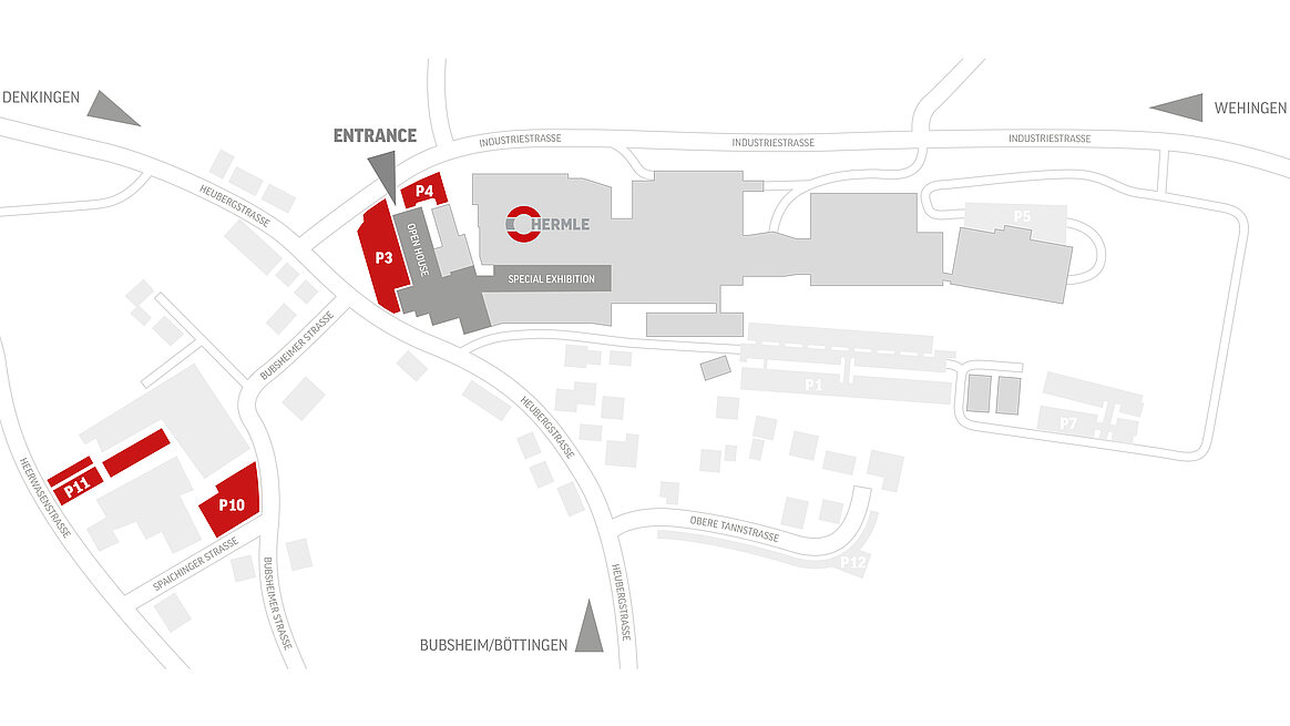 Please note that the main entrance to the HERMLE Open House will only be open during the official opening hours of the Open House. The official opening hours are Tuesday to Friday from 9 am to 5 pm.